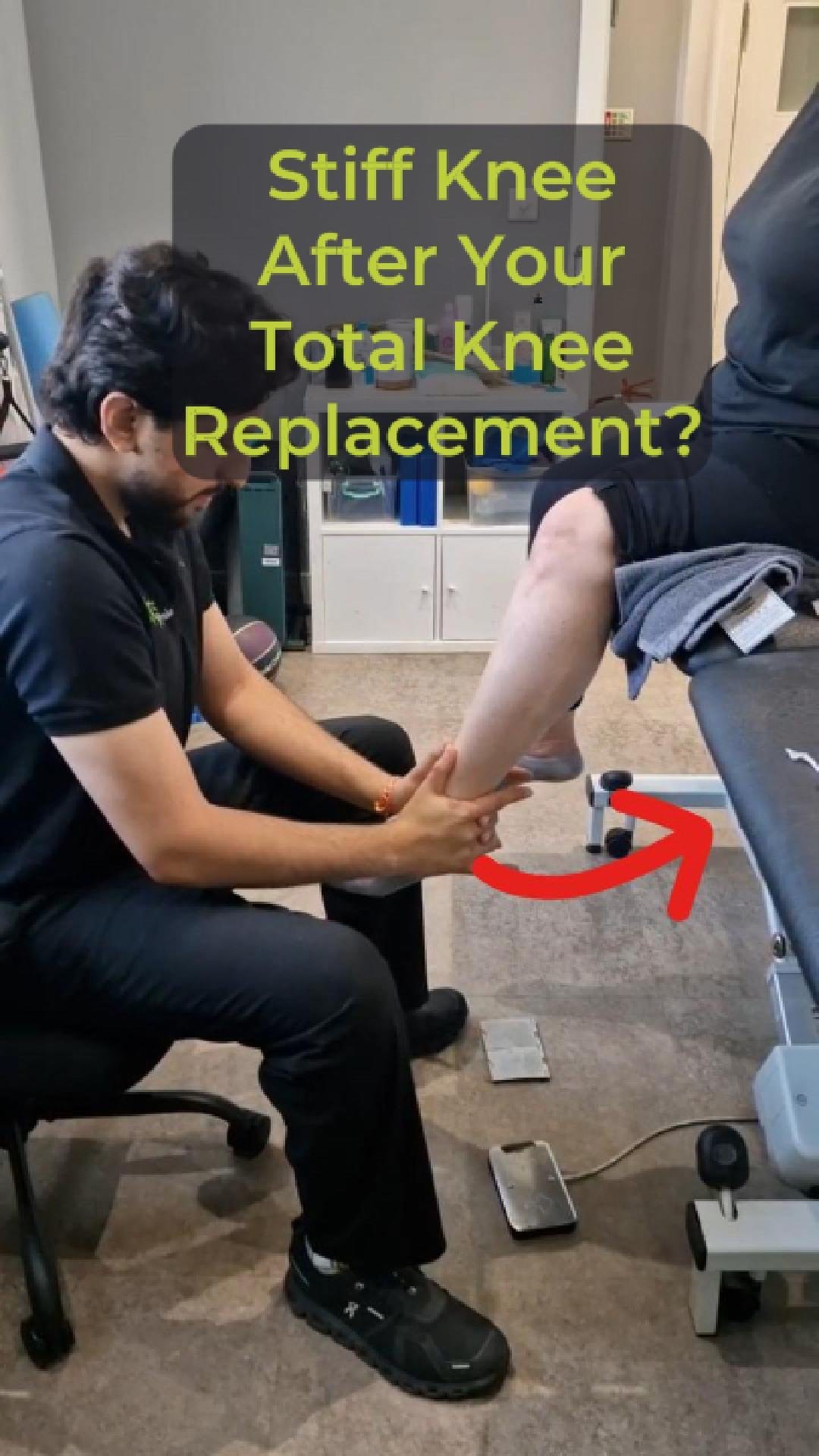 Stiff knee after Total Knee Replacement surgery? One of our physios working to help a patient with a stiff knee bend their knee better.